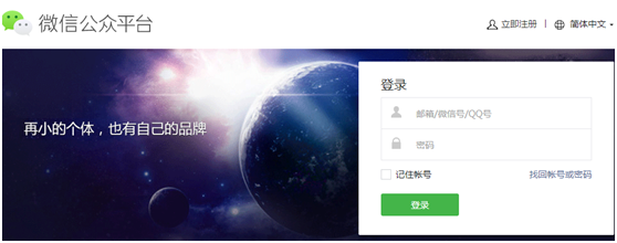 在微信公众平台官网首页(mp.weixin.qq.com)点击右上角的“立即注册”按钮。
