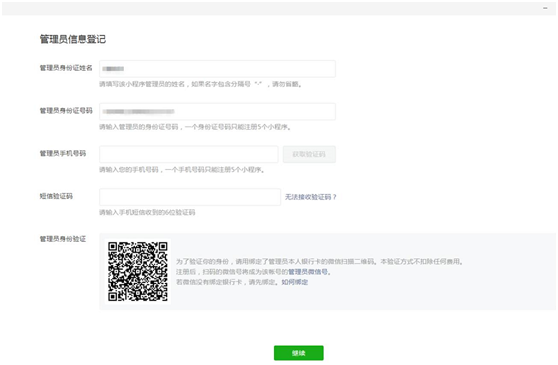 1、管理员信息登记(可以不是企业法人),一个管理员的身份证号,只能注册5个小程序;