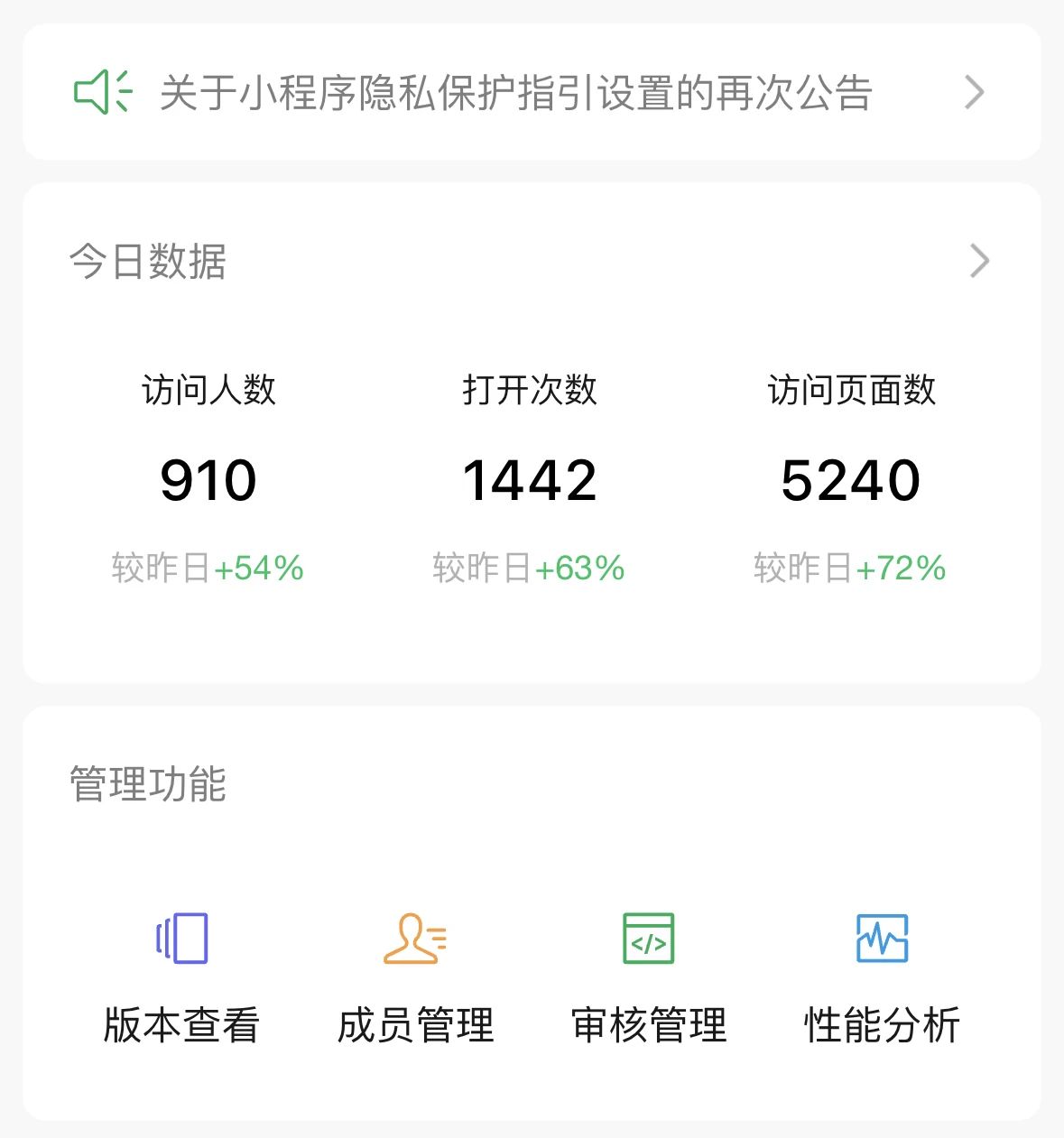 可以看作简化版的小程序管理后台,我用的最多的是审核管理。很多时候代码提交审核了,版本通过了,我人在外面,不方便用电脑,这个时候我就直接用这个小程序进行版本发布,非常方便。