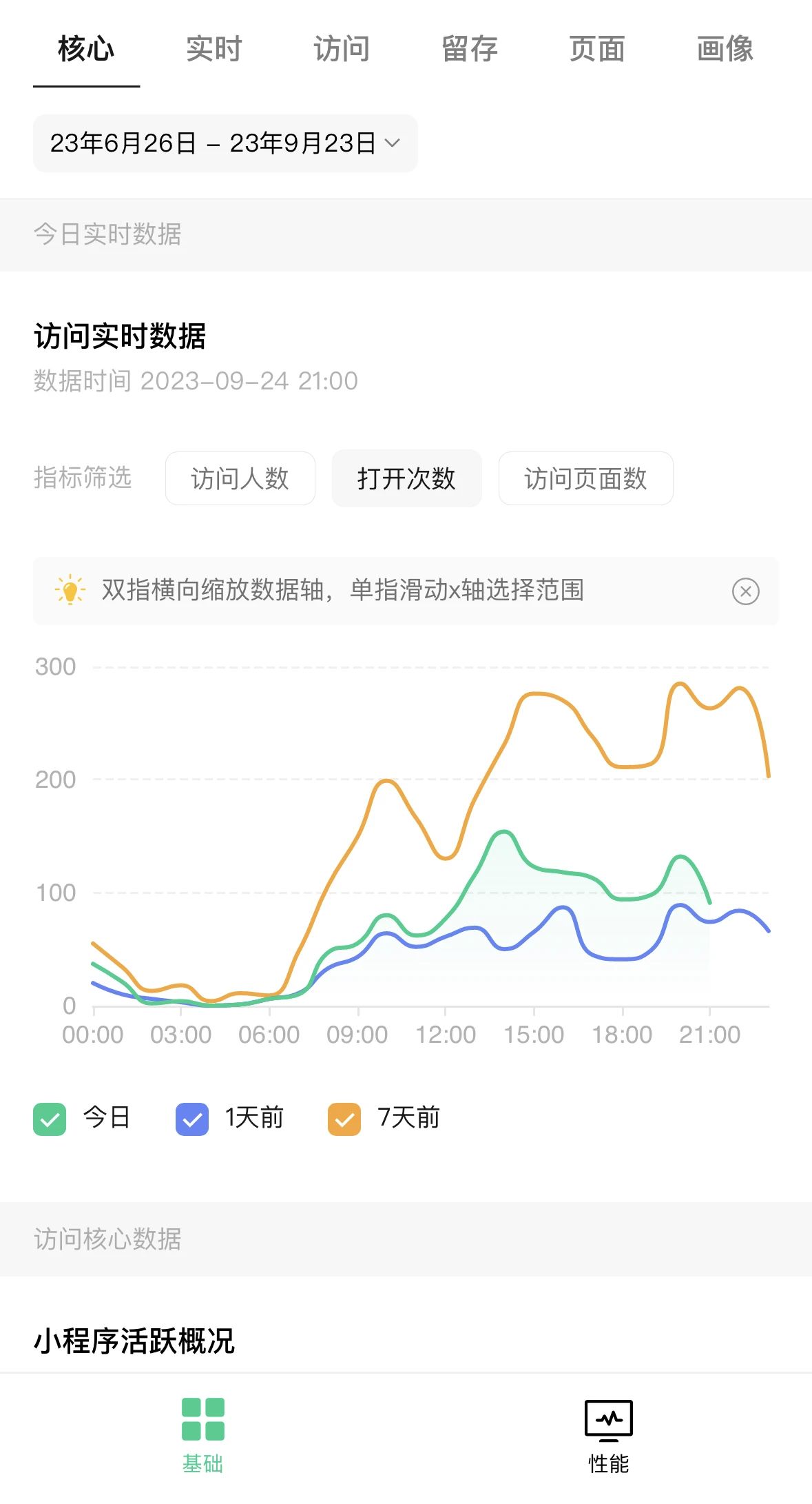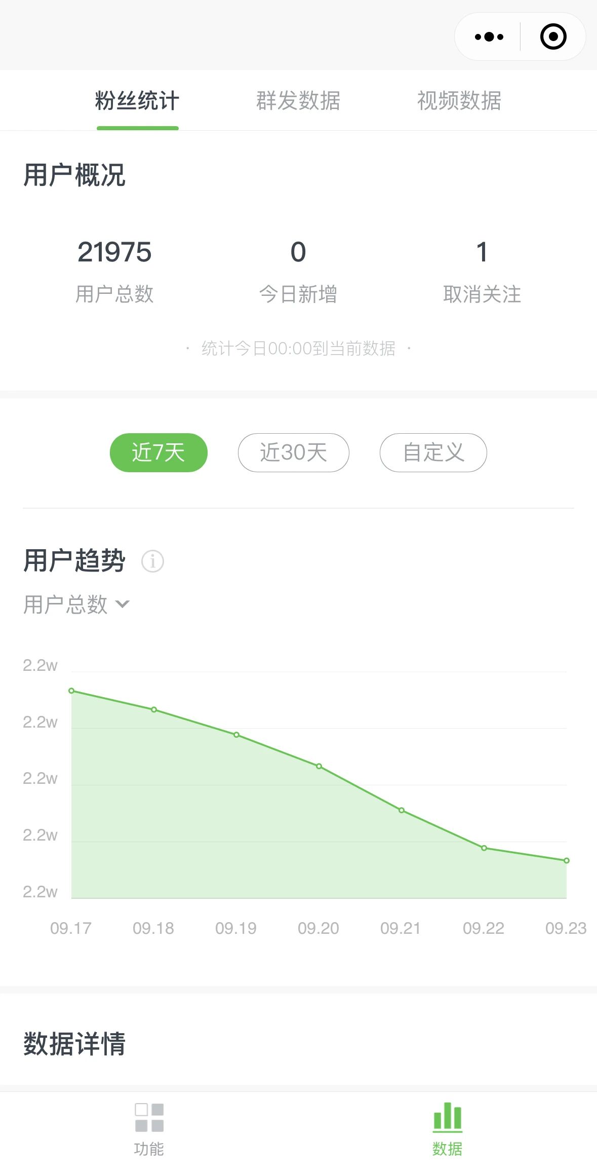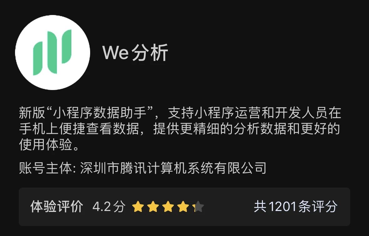 当小程序上线后,数据分析是必不可少的。从最开始的小程序数据助手到现在的We分析,我几乎每天都会查看数据分析数据来源,这样可以及时的去调整我的运用策略和发现程序问题。
