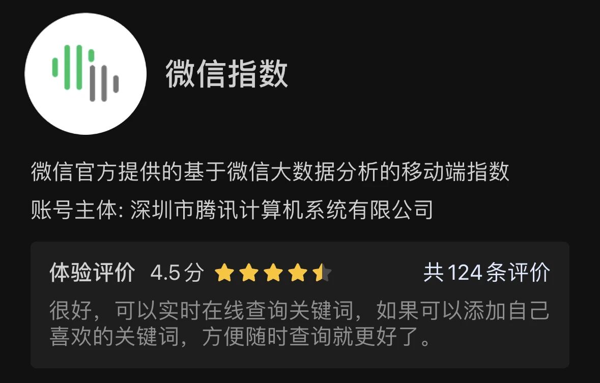 微信指数小程序对我来说使用频率最高了,无论是小程序方向的决策还是公众号文章内容方向的决策我都会先查找一下微信指数,如果内容有热度才能去做,否则做了也白做。