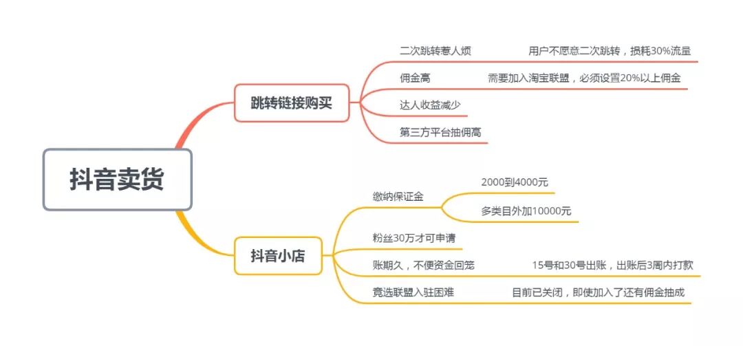 抖音卖货之抖音小店:开通抖音小店需要有淘宝天猫京东店铺或抖音粉丝达到30万,还需要交纳2000到4000元的保证金,如果有多个类目,还需要额外交纳10000元的保证金;且账期时间过长,15号、30号出前半个月的账单,结算到自己的账户还需要3周的打款时间